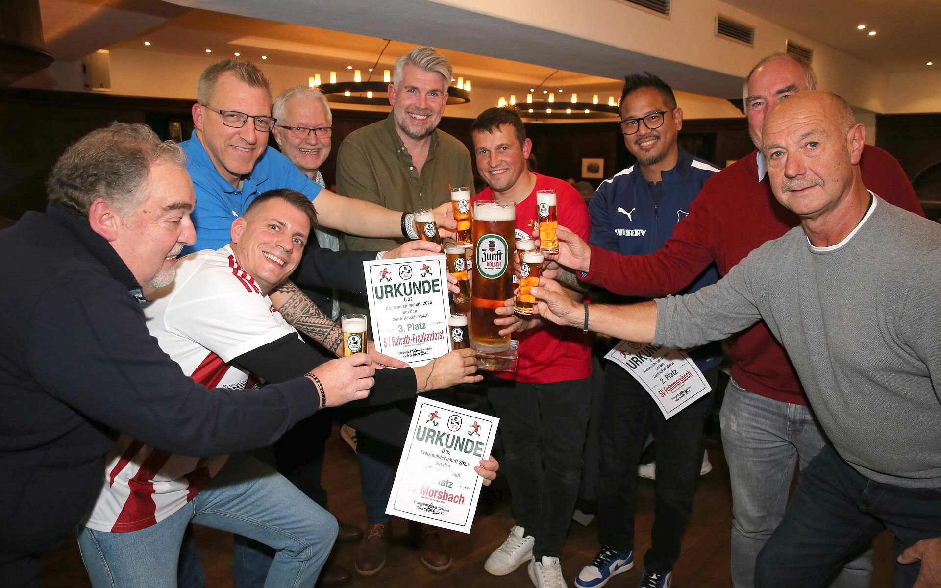 Bereits zum 27. Mal fand die Siegerehrung der Ü32-Kreismeisterschaft um den Zunft-Kölsch-Cup der Erzquell-Brauerei im traditionsreichen Braustübchen in Bielstein statt.