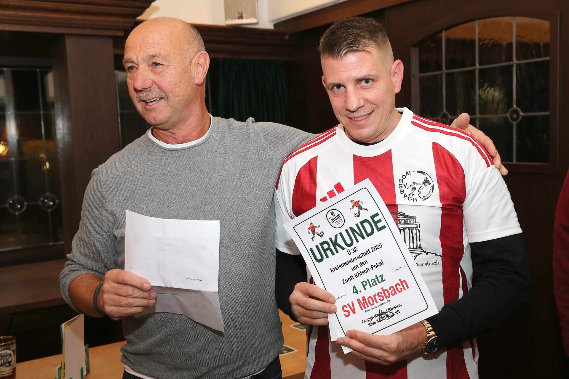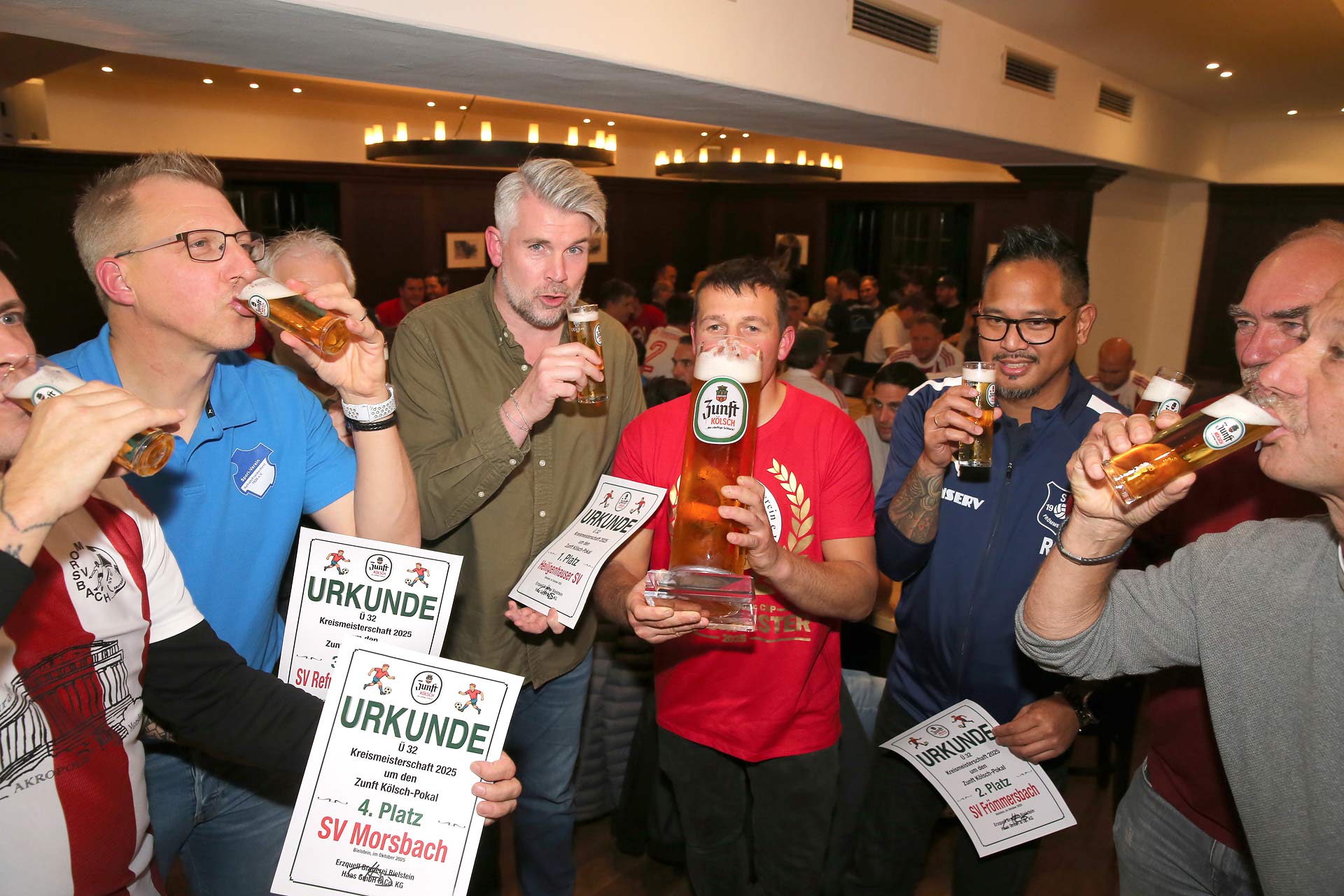 Bereits zum 27. Mal fand die Siegerehrung der Ü32-Kreismeisterschaft um den Zunft-Kölsch-Cup der Erzquell-Brauerei im traditionsreichen Braustübchen in Bielstein statt.
