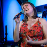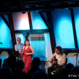 Französisch ging es los in Bielstein, aber Marion kann auch deutsche Lieder komponieren, so ihr erstes Stück auf Deutsch: „Die Badewanne voller Bier“. Und Sobo fand „wie auch anders soll auch eine Erstlingskomposition heißen“. Ihr Kopf als Songwriterin sei voller Bilder, erklärte Marion. Sie wäre auch noch gerne auf eine WG-Party in Wiehl gegangen, doch die Burghausgäste konnten da leider kein Angebot machen. Das nahm sie locker und begeisterte weiter mit ihrer jazzigen Stimme, mit der sie bunte Geschichten von Französisch bin hin zum märchenhaften Romales erzählte. Viel Leichtigkeit und Schwung bringt sie in ihre Lieder, in die auch schon mal französische Gedichte einfließen. Sie lieben Django Reinhardt, von dem sie auch einiges adaptieren. Ein Gypsy Jazz Standard ist auch das „Joseph, Joseph“. Das präsentierten sie mit englischen Text und dem Zusatz in Deutsch mit „sie will nicht Blumen und keine Schokolade“.