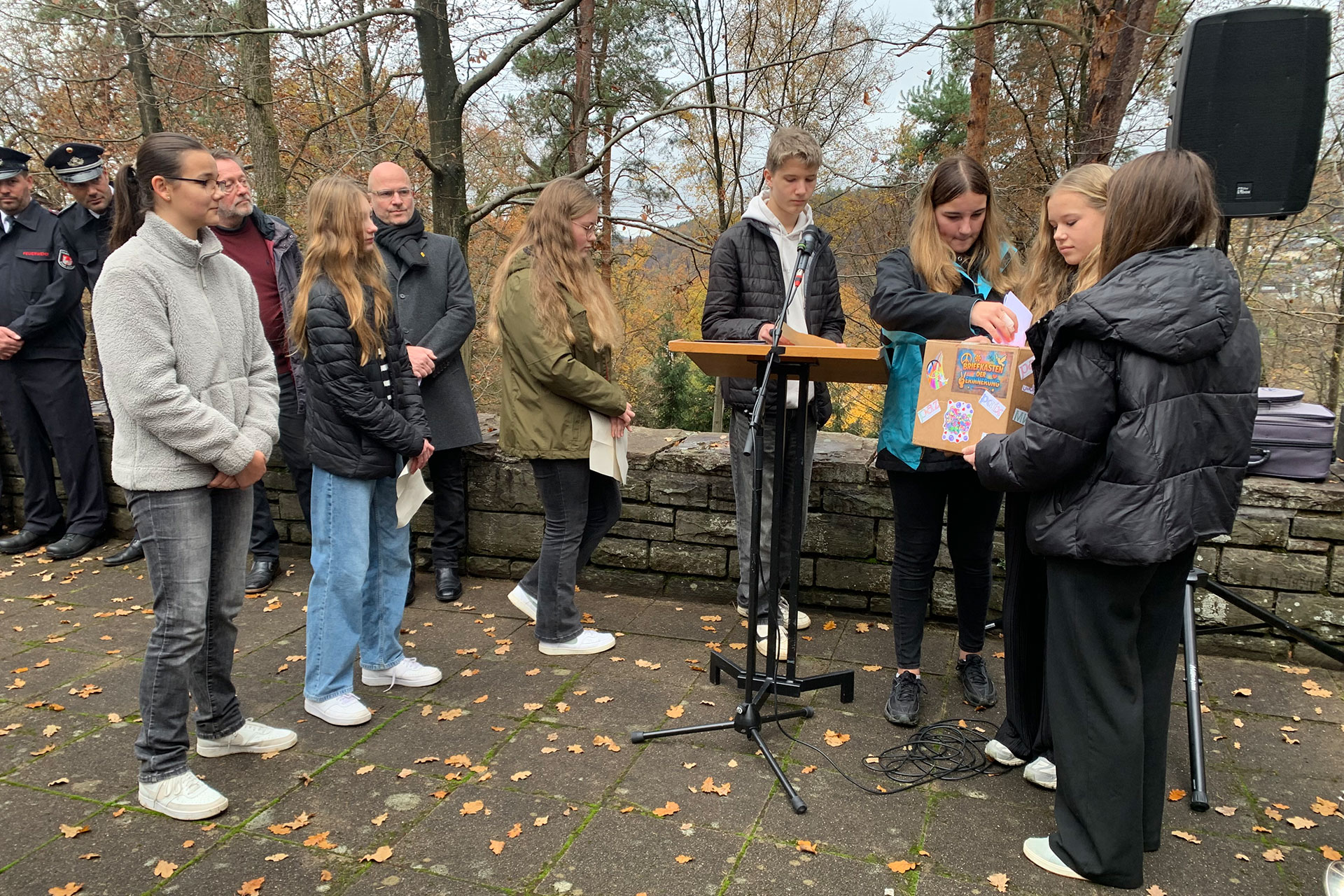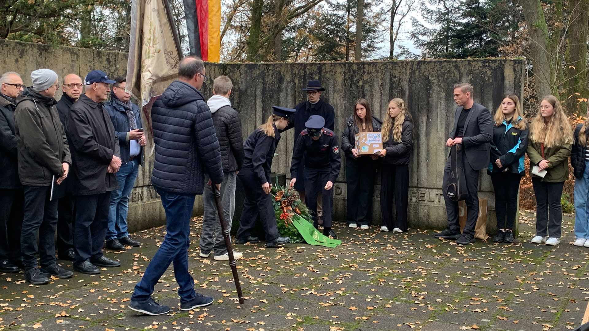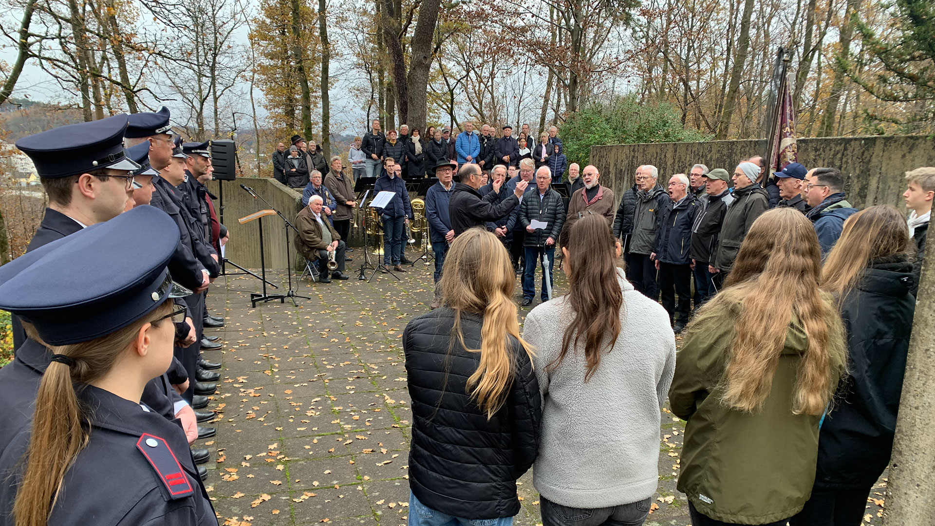 Die Gedenkfeier am Ehrenmal in Bielstein umfasste eine Lesung eindrucksvoller Brieftexte von Schülerinnen und Schülern der TOB-Sekundarschule sowie musikalische Beiträge des Bielsteiner Männerchors und des Posaunenchors Mühlen und Drabenderhöhe.