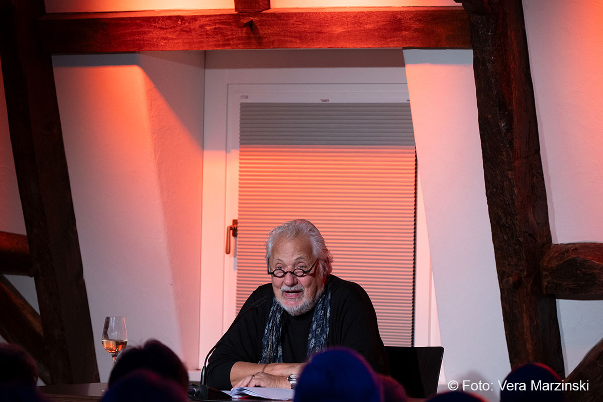 Das Programm dreht sich humorvoll um die rheinische Mentalität und die „Geheimnisse“ des rheinischen Überlebens. Aber auch um das Überleben im Allgemeinen. Und auch über sein eigenes, denn erst kürzlich hatte er auf der Bühne einen kleinen Schlaganfall, was er mit „auf dem Boden ist es auch ganz schön – blöd ist nur, wenn die Leute denken der Beikircher ist besoffen“ kommentierte. Jetzt habe er sich runderneuern lassen. So gab der fast 80-Jährige vieles rund um das Motto „Überleben – Wat sonst?!“ von sich und simmelierte über Oberbergische Sänger und auch über einen Gebrauchtwagenhändler. Nämlich über den ehemaligen Finanzminister Christian Lindner – der wäre endlich am Ort seiner Berufung angekommen. Und wo Beikircher schon bei dem Wuppertaler Lindner war, hatte er auch noch eine Anekdote zur Bahn in petto. Da zeigte ein Rheinländischer Zugbegleiter, dass ihn so schnell nichts aus der Ruhe bringen konnte – so richtig rheinländisch halt. Auf dem Weg nach Wuppertal verkündete dieser Zugbegleiter, man sehe jetzt Häuser von Düsseldorf statt wie geplant die Wuppertaler – weil „man sich verfahren habe“. Das, so Beikircher, belege, dass der rheinischer Humor die ultimative Überlebensstrategie sei.