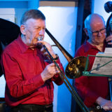 Die „Dusty Lane Jazzband“ ist eine der dienstältesten Jazzformationen im Ruhrgebiet – gegründet im April 1960 in Essen. In Wiehl nicht unbekannt, so spielten sie im September 2018 in der „Posthalterei“ in Wiehl. Allerdings sah die Besetzung da noch anders aus. Aber Pianist Peter Mischke, der seit 2012 am Tasteninstrument für die Band sitzt, war dabei und auch Jürgen Schlitt. Der spielt seit 1966 die Posaune bei den Dusty Lanes und hatte in Bielstein sein letztes Bühnenkonzert. Der 82-Jährige ließ brillant sein Instrument erklingen. Auch bei „What a wonderful world“, zudem er betonte, dass das Stück gespielt werden müsse, auch wenn es im Moment nicht so gut aussehe in der Welt – um ein bisschen Mut zu machen. Die Moderation oblag zum größten Teil Trompeter Gerd Debring, der seit 2023 in der Band aktiv ist und in Mülheim an der Ruhr lebt. Ebenfalls 2023 dazu gekommen ist Erich Leininger, der Saxophon und Klarinette spielt. Seit 2022 hat Barbara Schirdewahn-Debring den Haupt-Gesangspart inne und im gleichen Jahr kam Schlagzeuger Achim Bräuer dazu. Am Bass in Bielstein Nico Gastreich. Er war als Ersatzmann eingesprungen, aber er spielt ansonsten nicht nur den Kontrabass, sondern auch Tuba. Zudem war er 23 Jahre Mitglied der „Pilspicker Jazzband“ in Dortmund und gründete 1990 die „Joys of Jazz“.