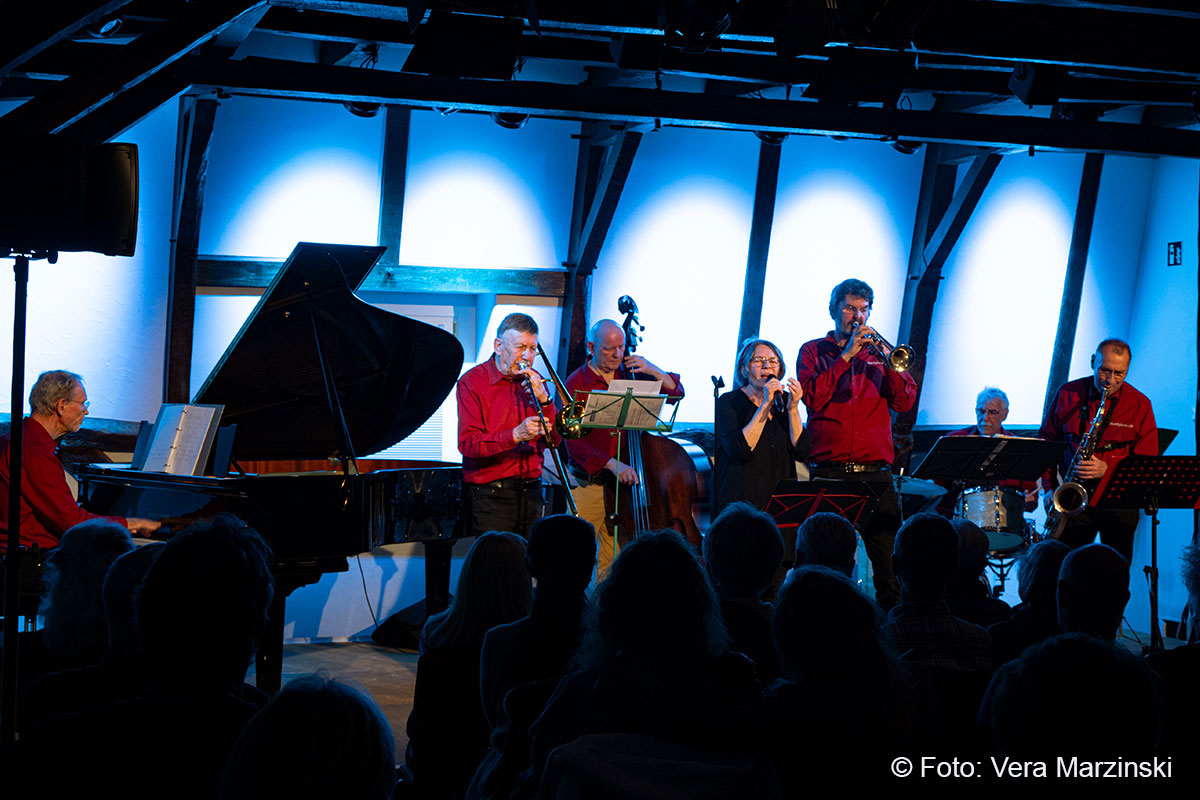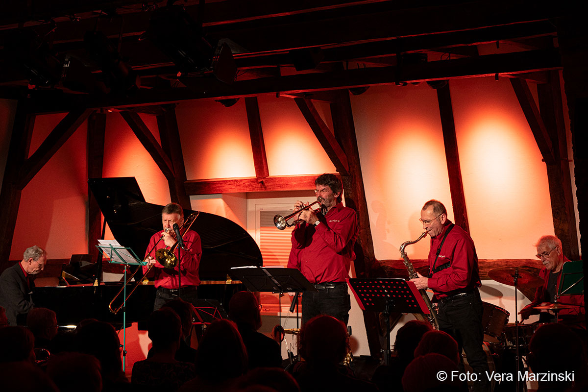 Kurz vor Beginn der Vorweihnachtszeit präsentierte der Kulturkreis Wiehl mit der „Dusty Lane Jazzband“ noch ein wenig Jazz im Burghaus Bielstein. Die Band spielt eine swingende Dixielandmusik, die sich stilistisch der Chicago-Richtung zuordnen lässt.
