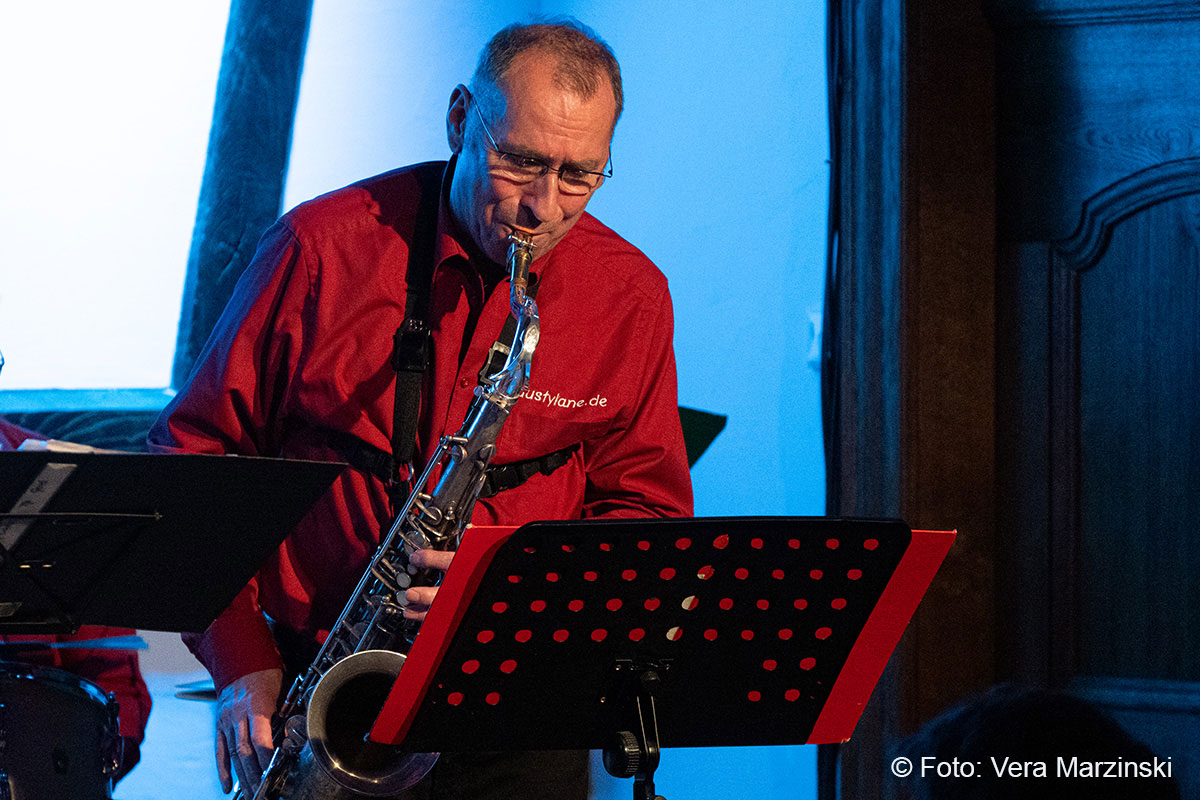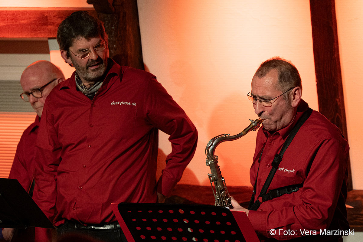 Die Dusty Lane Jazzband spielte bereits zahlreiche Konzerte in Deutschland und war vielfach auch bei renommierten Jazzfestivals im Ausland engagiert – beispielsweise in Belgien, Italien, in den Niederlanden sowie in Finnland. Außerdem produzierten sie mehrere CD und andere Tonträger. In Bielstein hatte die Dusty Lane Jazzband Stücke wie „I found a new baby“ dabei und sie gingen teilweise in den Louis Armstrong- Modus, wie bei „Someday you‘ll be sorry“. Es sei zwar bereits dunkel draußen, aber „wir spielen ein Sonnenlied“, so Debring und es folgte „On the sunny side“. Zudem gab es ein „If I had you“, das auch Benny Goodman spielte. Mit „Bei mir bist du schön“ und „Georgia“ ging es weiter über Gershwins „Wonderfull“ zu einer beschwingten Riverboat-Fahrt. Auf die folgte Duke Ellingtons „Do nothin till you hear from me“. Mit ihrem Konzert sorgten sie bei einigen Gästen für große Begeisterung. Auch wenn Weihnachten nicht mehr fern war hieß es dann irgendwann nicht „Driving home for christmas“, sondern „Baby please come home“.