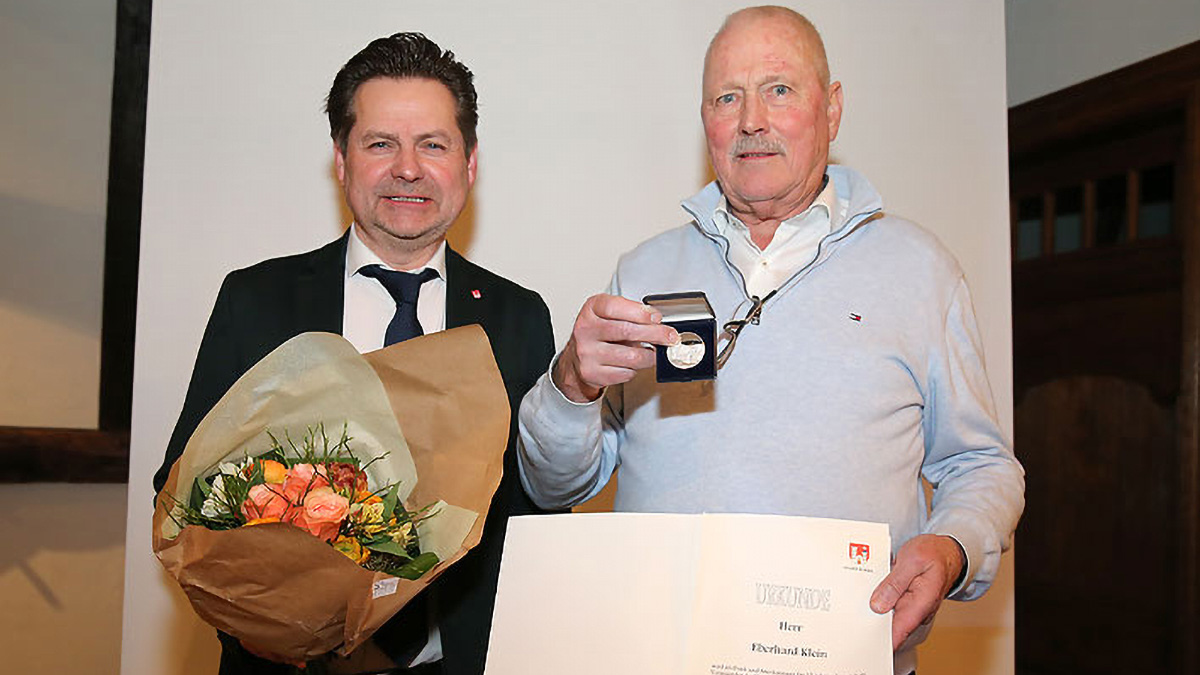 Für seine Verdienste um die Erhaltung des Freibads in Bielstein ist Eberhard Klein gestern Abend ausgezeichnet worden: Bürgermeister Ulrich Stücker ehrte ihn mit dem Silbernen Wiehltaler.