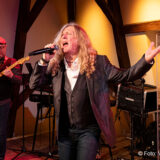 „Wollt ihr gerne singen?“ und „“ich hoffe ihr singt laut!“ kam von Manni Lohuis, bevor sie „Stars“ spielten. Das falsche Lied zur falschen Tageszeit sei das darauffolgende zwar, aber bis zum nächsten Morgen wollten sie nun doch nicht bleiben um „Sunrise“ vorzutragen. Sänger Manni wollte außerdem wissen, ob das hier eine Reggae-Gegend sei und animierte zum Mitsingen beim „Night Nurse“, Das stammt im Original vom Jamaikaner Gregory Isaacs – Simply Red veröffentlichte es 1997. Und das Mitsingen klappte erstaunlich gut in Bielstein. Ein Aufstöhnen ging durch den Burghaus-Saal bei den ersten Tönen von „If you don‘t know me by now“. Das hat die Band selbst lautstark in der Lancess Arena in Köln beim letzten Simply Red Konzert mitgesungen erzählte Sänger Manfred Lohuis. Wie schon bei anderen Stücken zuvor bot Bernhard Graweloh ein brillantes Saxophonsolo. Das war zum relaxed Dahinschweben – beim anschließenden „Fairground“ gab nicht nur die Band richtig Gas. Von Cole Porter coverte Simply Red „Ev’ry time we say goodbye“ – in Bielstein gab es dieses Stück von „The Right Thing“ in kleiner Besetzung. Nur Hammond, Saxophon und Gesang. Als Alex Rosenhof die Holzgitarre rausholte, folgte das Lieblingslied des Sängers: „For your babies“. Insgesamt ein schöner Wechsel von Balladen-Stücken zu sehr tanzbaren wie „Money‘s to tight to mention“ aus 1985. Und so ließen sich die Burghausgäste von den mitreißenden Klängen von „Simply Red“ verzaubern und erlebten mit „The Right Thing“ einen Abend voller musikalischer Höhepunkte. Mit „die hier sind richtig gut“, hatte Hans-Joachim Klein genau richtig gelegen und nach drei Tribute-Abenden konnte man sagen: „Aller guten Bands/Dinge sind drei“.