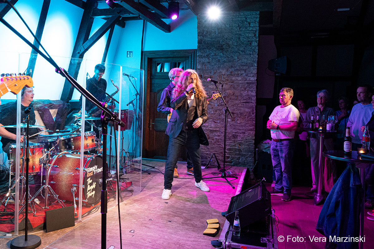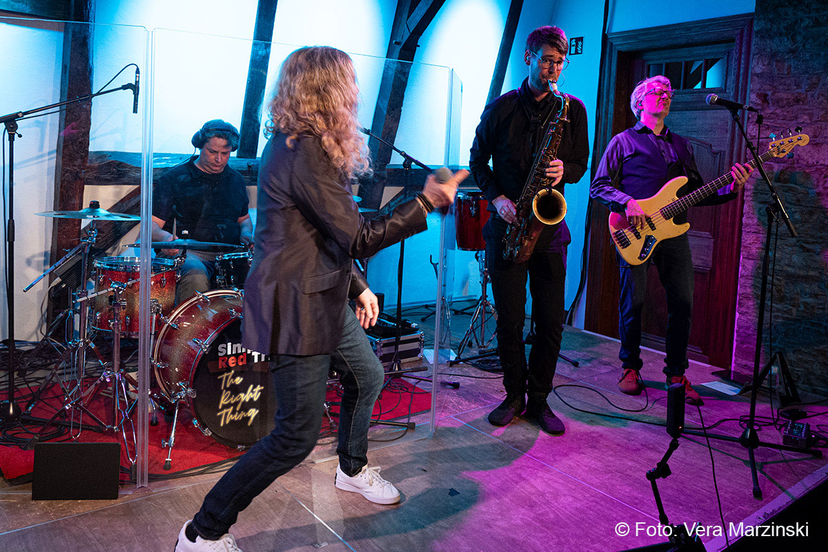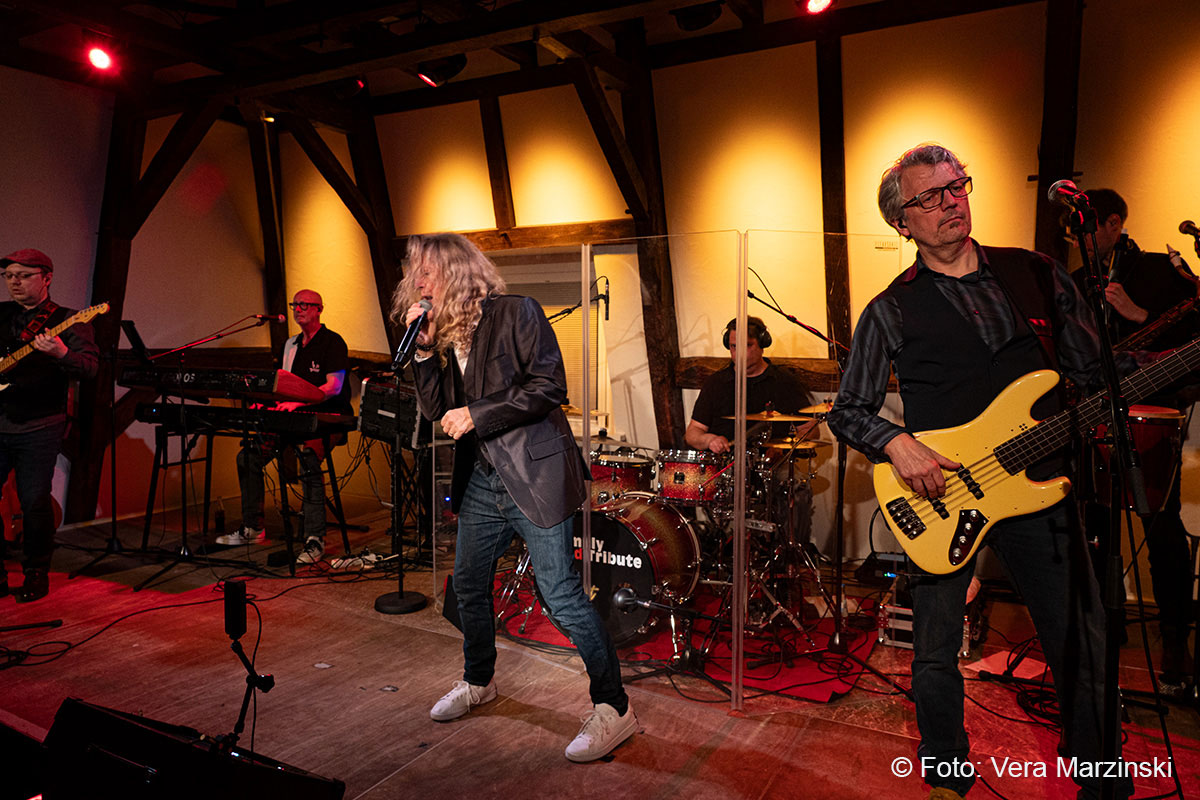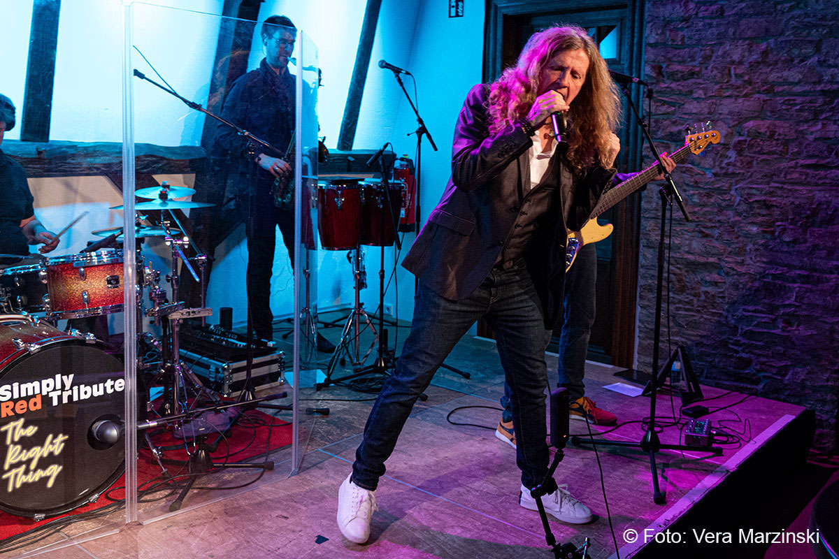 Mit authentischem Sound und einer energiegeladenen Show nahm „The Right Thing“ mit auf eine musikalische Reise durch die größten Hits von Simply Red. Von „Holding back the years“ bis „Money’s too tight to mention“ – alle Klassiker waren dabei. Und mit einem Stück der letzten Platte des rothaarigen Sängers Mick Hucknall starteten die sechs Musiker. „Better with you“ kannte vielleicht nicht jeder, aber es ging direkt in die Beine. Ein großer Simply-Red-Klassiker ist „The right thing“ und zudem der Namensgeber dieser fantastischen Band. Manfred Lohuis (Gesang), Kiki Schröer (Bass/Gesang), Mario Jervers (Schlagzeug), Alex Rosenhof (Gitarre/Gesang), Wolfgang Elsig (Keyboards/Gesang) und Bernhard Graweloh (Saxophon/Ewi/Perc.) sind allesamt Profis ihres Fachs und begeisterte „Simply Red“-Fans. Ihre Leidenschaft für die Musik und ihr virtuoses Können sorgten im Burghaus Bielstein für ein unvergessliches Konzerterlebnis.
